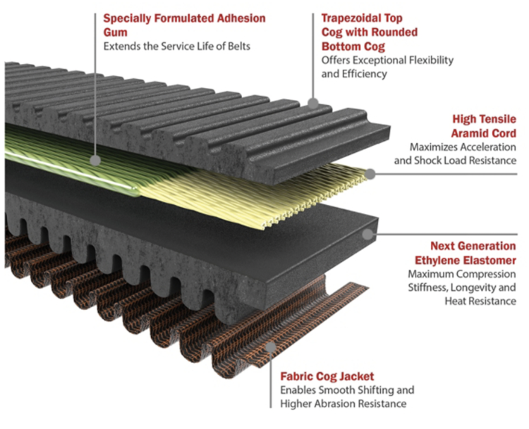 IMPROVED DURABILITY, CRACK, AND WEAR-RESISTANCE MEANS A LONGER-LASTING, HIGH-PERFORMANCE POWER TRANSMISSION BELT FOR THE MOST DEMANDING APPLICATIONS.